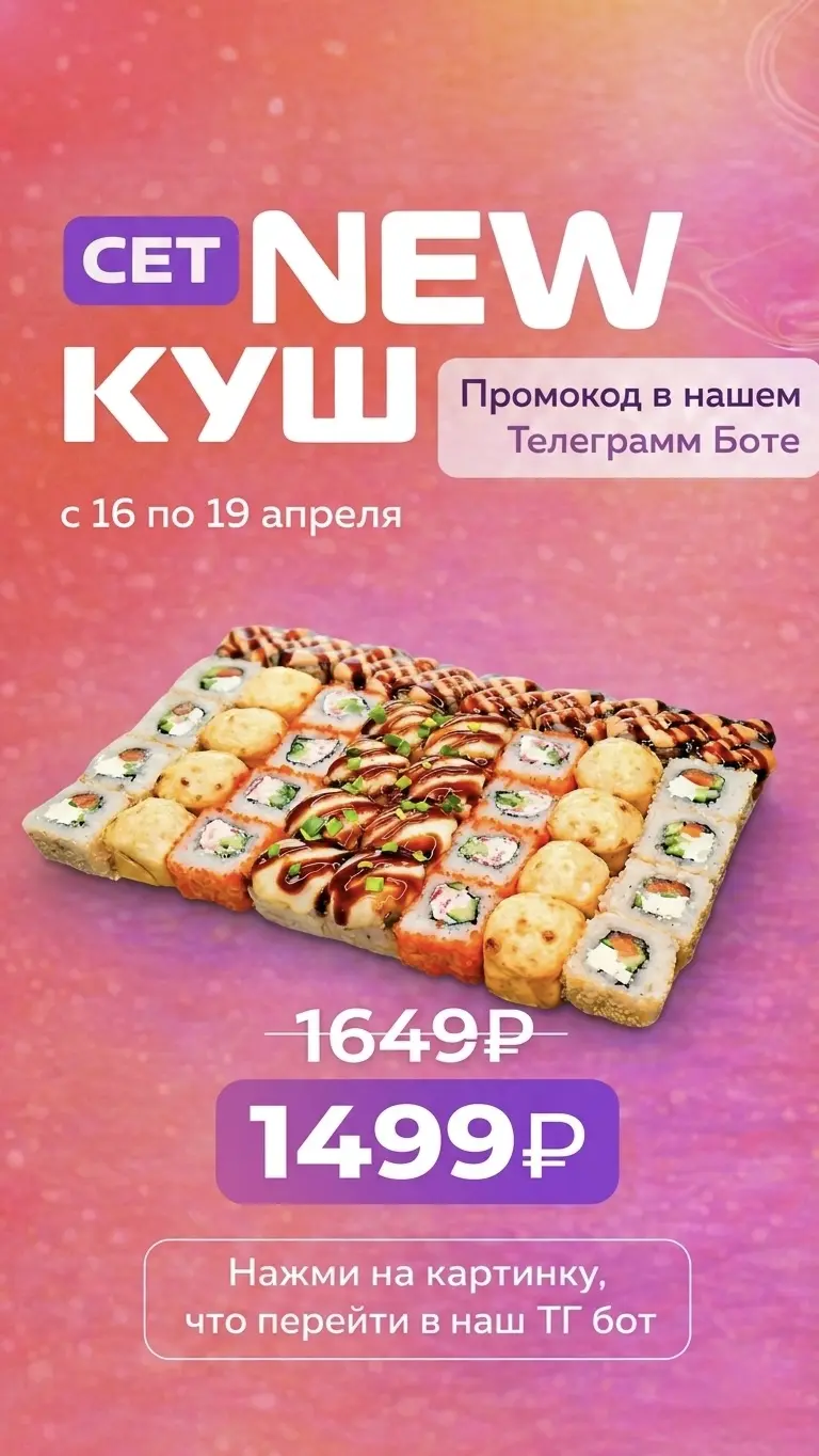 Калифорния снежный краб,Шеф гриль,Ролл Киото,Чикен темпура спайси,Мексика Чиз