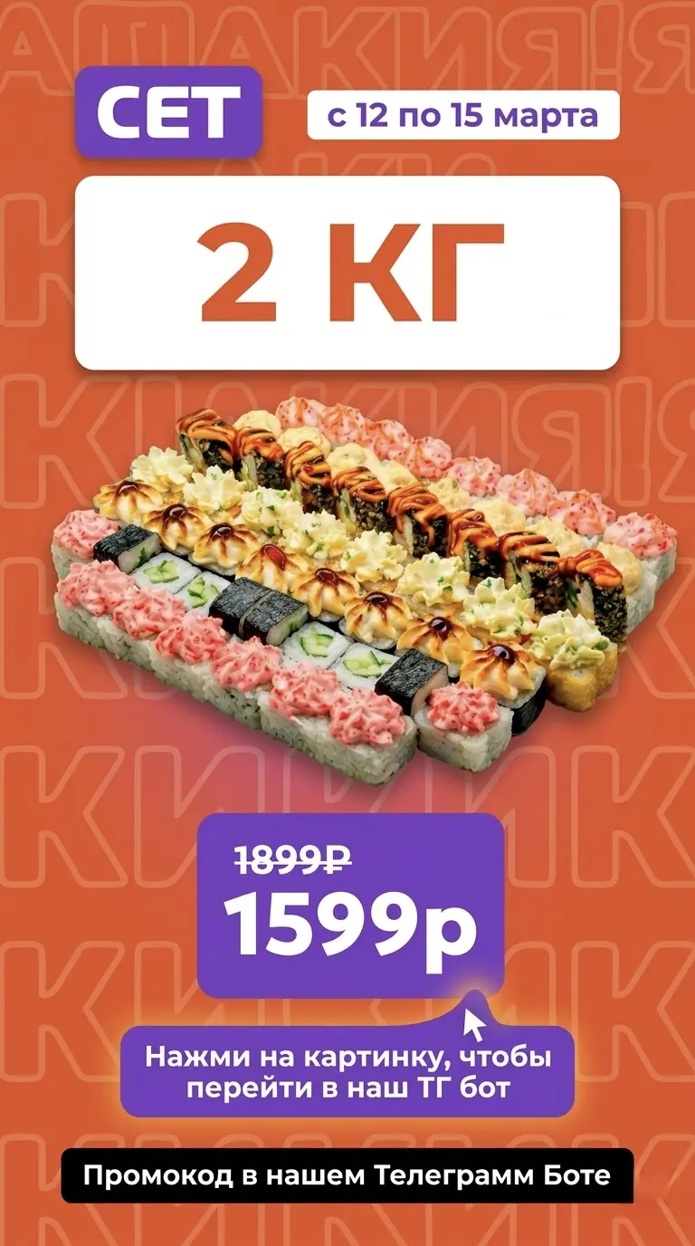 Ролл Асами, Тортилья с лососем, Ролл Камчатка, Сырный лосось гриль